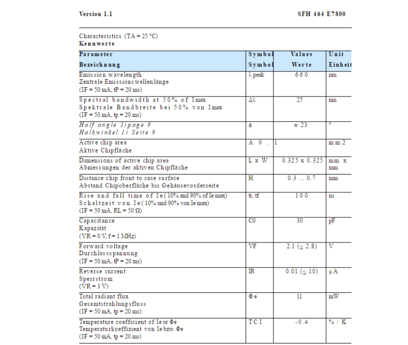 OSRAM SFH464 660nm Gallium Arsenide Red Light Diode
